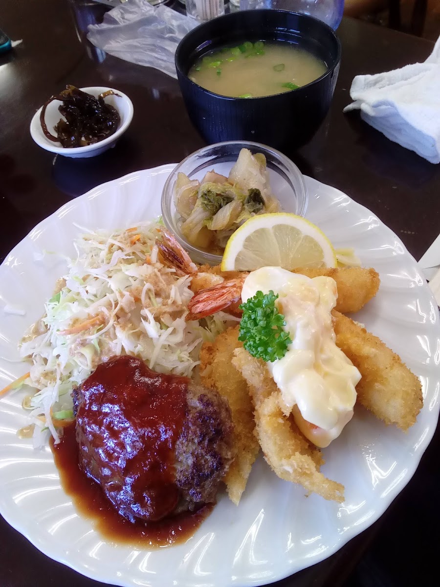 The menu at Kitchen Cafe Mint is a treasure trove of flavors, with a standout item that has captured the hearts—and appetites—of many: the エビフライとハンバーグ (Shrimp Fry and Hamburger). Picture this: a succulent shrimp fry, expertly prepared, boasting a juicy interior and a light, crispy exterior that practically beckons you to indulge. Accompanying this heavenly dish is a hamburger that evokes memories of home-cooked meals—comforting, flavorful, and generously sized.